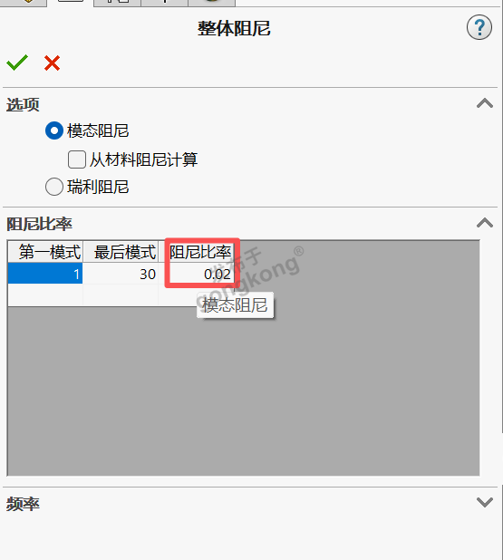 11、最后在阻尼板块中将阻尼比例设为 0.02,完成设置后即可运行求解。