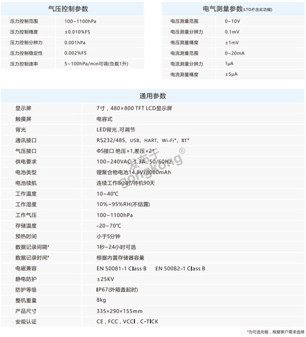 压力控制量程覆盖100~1100hPa控制精度达 ±0.010%FS,控制稳定性低至0.002%FS,压力分辨力精准到0.001hPa,能捕捉微小气压波动,并支持在线校准