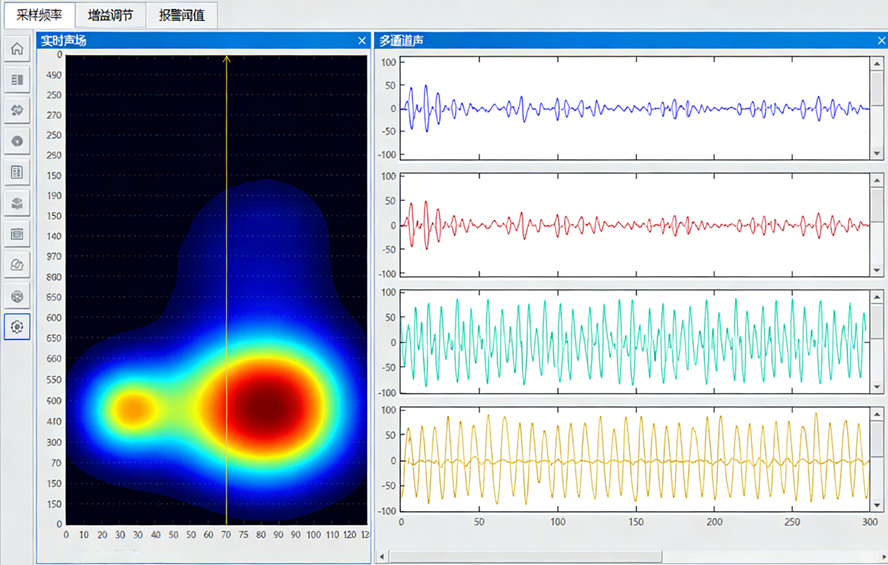 信号采集:支持多通道声学信号与光学图像同步采集,声学采样率不低于 25kHz,图像分辨率满足 640*480 像素要求。