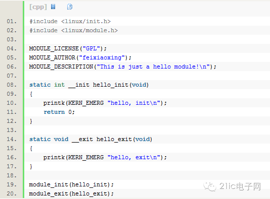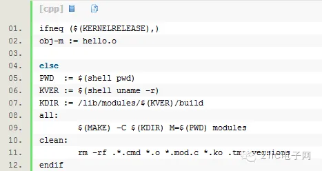 加载模块就是输入insmod hello.ko,卸载模块就是rmmod hello.ko。在这过程中,我们都可以看到相应的打印内容。当然,朋友们可以一直往里面加代码,一步步调试,一步步学习,只要坚持和总结,都是可以学习好linux的驱动代码的。这里顺便把Makefile也写一下,
