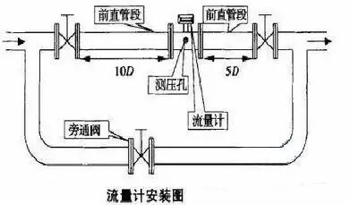 在安装流量计的管道应该有可切断管道内介质的阀门,方便日常维修、维护。工艺不容许流量中断时。可在安装流量计的管道上加旁通管道。