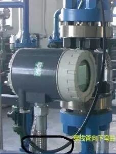 流量计进线口,线缆及穿线管应有向下的弯曲,并在最低处开口,以免进水,造成短路。