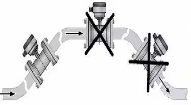 当出口为放空状态时,传感器不应安装在管道放空之处,应安装在较低处。传感器安装在管道下方处时,应保证传感器内被液体充满,不能出现空管状态。