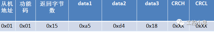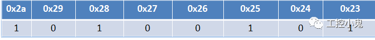 上表中data1表示0x0023-0x002a的线圈状态,data1的最低位代表最低地址的线圈状态,可以理解为小端模式;