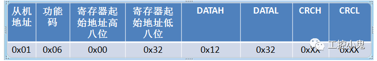 3)响应:同发送指令;如果写入成功,返回发送的指令,即01、06、00、32、12、32