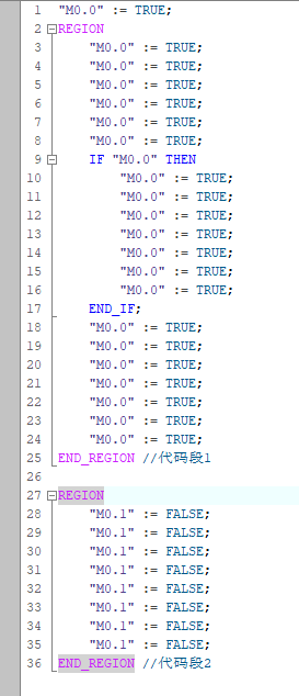 通过使用“REGION”和“END_REGION”即可实现折叠代码,并且不影响程序执行。