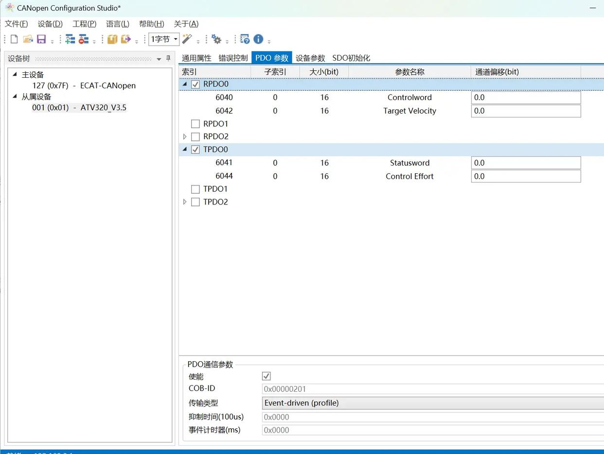 设定从站可编程逻辑控制器数据对象(PDO)所需的参数