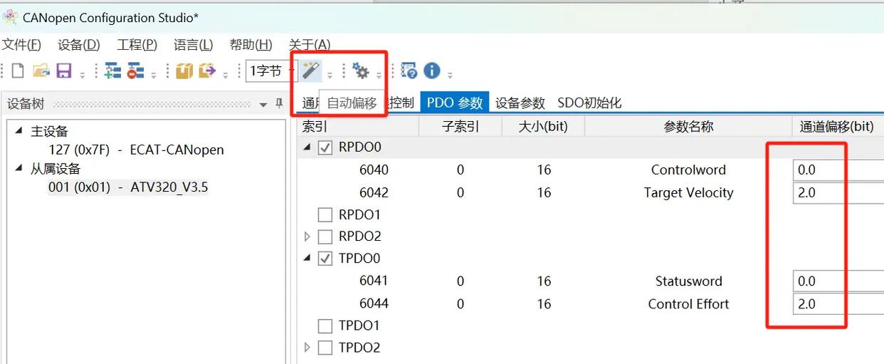 点击自动偏移功能,完成对应EtherCat主站地址的分配。