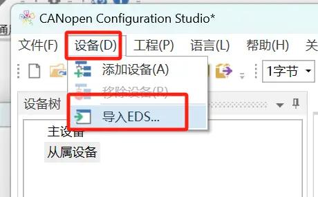 再次点击设备以添加从站(若软件中不存在从站,则需导入从站设备的EDS文件)