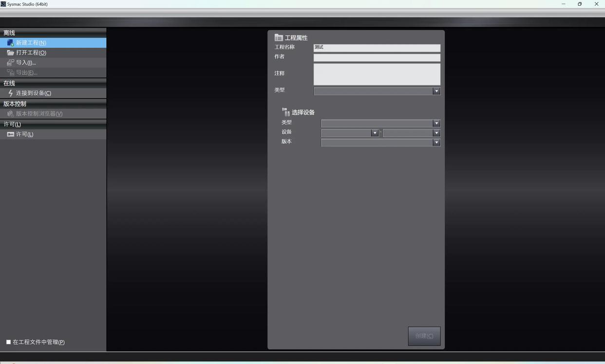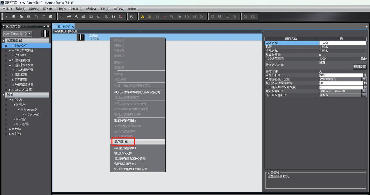 开启EtherCat主站软件,选定可编程逻辑控制器(PLC)后创建新的项目。