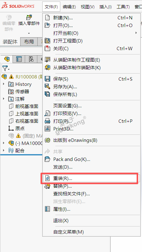 4、使用SW还原模式打开顶层装配体,并检出所有装配体