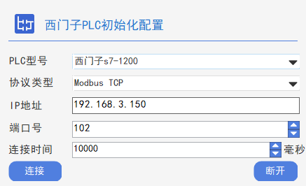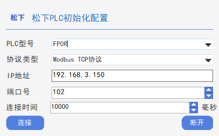 型号选择:根据plc型号,使用相应的plc连接模块,进行连接。如软件提供了西门子PLC初始化、松下PLC初始化、三菱PLC初始化。