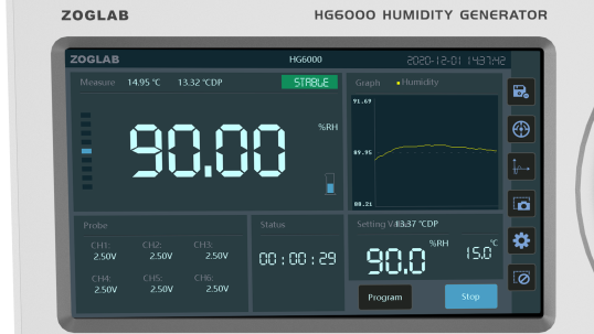 对湿度传感器定期进行计量校准,是维持湿度监测精准高效的必要工作。由佐格自主研发的HG6000双流法湿度发生器,依托双流法精准调控技术与全自动化设计,以快速响应、高效校准、智能操作为核心优势,为实验室高效湿度计量校准业务提供可靠支撑。