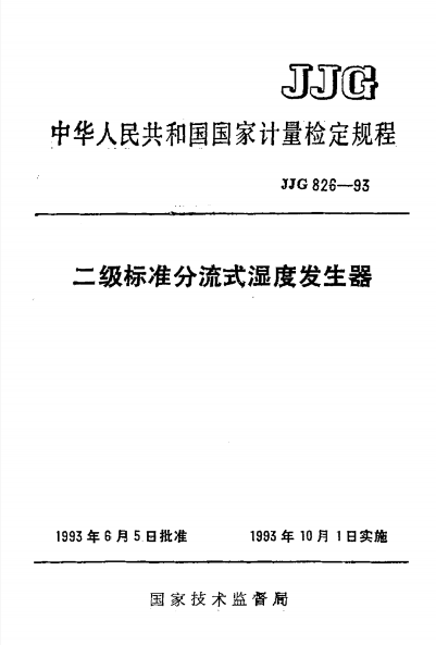 HG6000双流法湿度发生器的检定遵循《JJG 826-93 二级标准分流式湿度发生器》