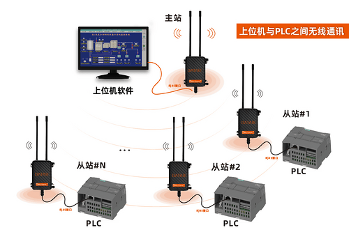 组态王、力控、Wincc等主流组态软件与1台或多台PLC之间无线通讯。