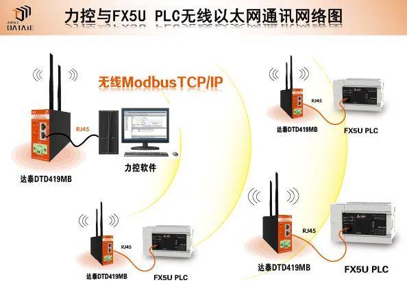 因此我们以三菱PLC系统为例,介绍多台FX5u PLC无线连接下的以太网无线通讯实现过程。无线组网系统如下: