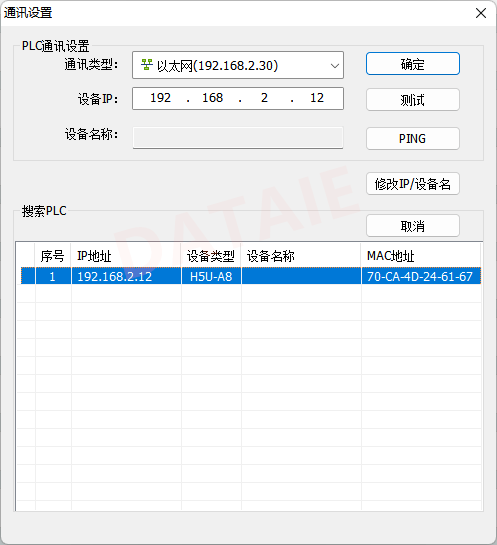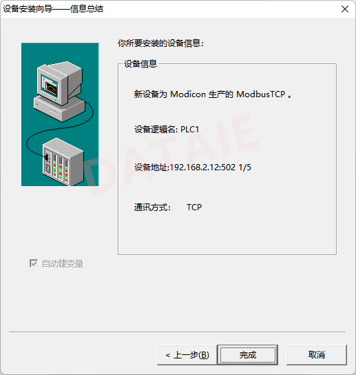 设备地址格式:192.168.2.12是PLC地址 502默认端口号 1是单位ID 5是超时时间