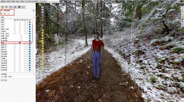11、接下来进行目标参数设置,本次需选定全局平均风速与体表体积温度作为仿真目标。
