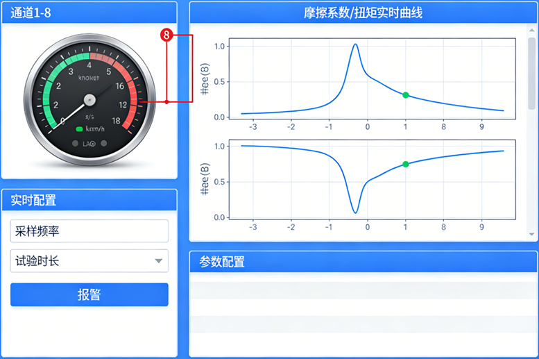 自动创建 “日期 + 试验类型” 分级文件夹,通过 “写入电子表格” 函数存储原始采集数据、滤波后数据及计算参数(摩擦系数、能量密度等),支持实时生成转矩 - 时间、摩擦系数 - 转速等特性曲线,数据可直接导出为 Excel 格式,方便后续溯源分析与报告编制。