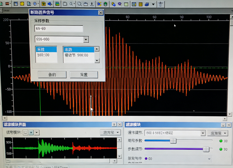基于 LabVIEW 搭建的声音信号采集系统,核心实现断路器不同运行状态下声音信号的精准捕获与数据化转换,解决了传统接触式信号采集的安装繁琐、易受设备干扰的问题。采集系统设置采样点数、采样率、录音设备 ID 等可调节参数,本案例中选取采样点数 10000、采样时间 0.5s,适配断路器分闸动作的时间特性,保证信号采集的完整性;同时集成录音模块与文件存储模块,支持将采集的声音信号以 WAV 格式存储,并自定义存储路径,实现原始信号的无损保存,为后续降噪与特征提取提供原始数据。