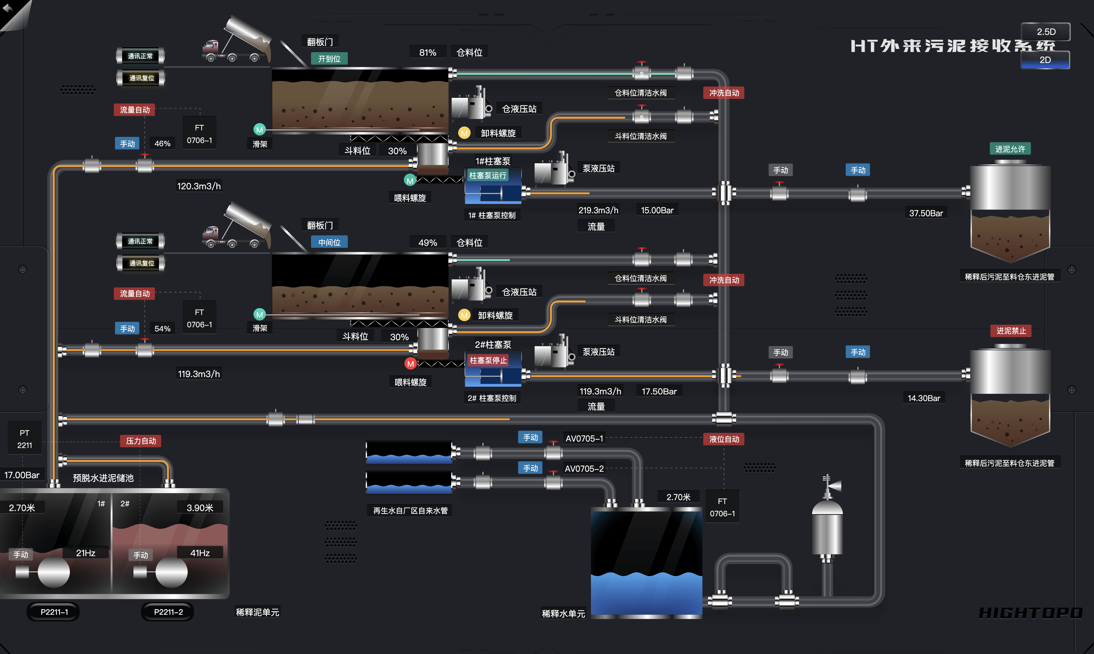 传统组态软件多以二维流程监控为核心,难以实现工业全场景的三维可视化与全要素数字孪生映射;而图扑 HT for Web 依托自身强大的 WebGL 可视化技术能力,实现了从二维组态监控到三维全场景数字孪生的一体化开发,支持工业生产全流程、全要素的数字孪生映射与虚实联动,大幅降低了工业数字孪生场景的开发门槛。