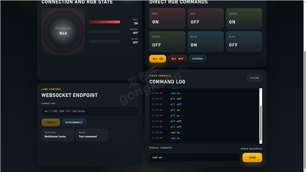 这一层打通之后,浏览器里发出的文本命令就不再只是“回显测试”,而是变成了真正能驱动板载外设的控制指令。