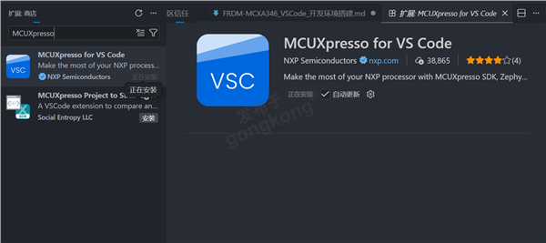 3. 搜索并安装 MCUXpresso for Visual Studio Code
