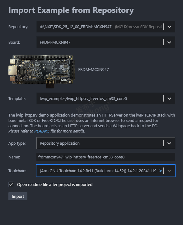 • 导入并运行 NXP 官方示例 lwip_httpsrv_freertos_cm33_core0