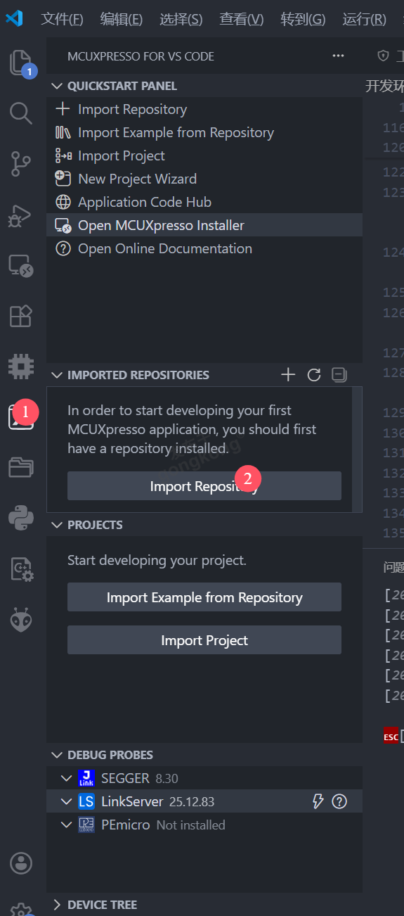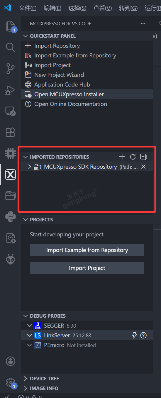 安装完成后,建议重启一次 VS Code,再回到 MCUXpresso 视图检查是否还有缺失依赖提示。